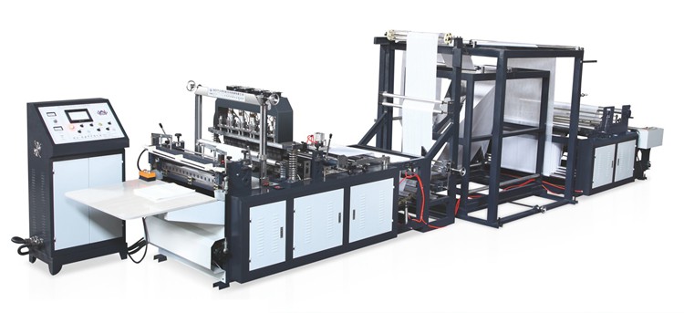 1.該機適用原材料為無紡布,能加工各種不同規格,不同型狀的無紡布袋,平口袋,手提平口袋,背心袋,穿繩袋及立體袋等,該機集機電為一體,運用LCD觸摸屏操作。配以步進步式定長,自動上料,光電跟蹤,電腦自動定位,電腦自動糾邊,無料自動停機,準確,平穩,自動計數,即可設定計數報警,自動打孔,自動燙把手等工控裝置,使其生產的成品封線牢固,切線美觀。高速效,是你可以放心適用的優質環保型制袋設備。